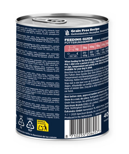 Met EUKANUBA Life Care natvoer voor senior honden met kip, kalkoen en wortel geeft u uw oudere hond een complete, smakelijke maaltijd die perfect is afgestemd op zijn veranderende voedingsbehoeften.