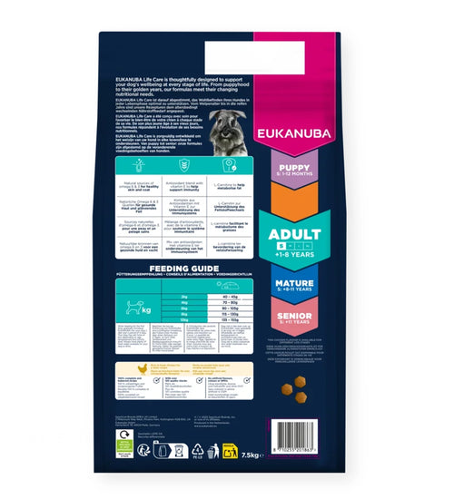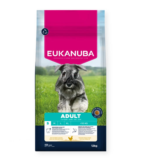 EUKANUBA Life Care Adult Kleine Rassen met verse kip biedt hoogwaardige, uitgebalanceerde voeding om te voldoen aan de voedingsbehoeften van kleine honden van 1 tot 8 jaar. Dit 100% complete droogvoer is rijk aan verse kip en ondersteunt een optimale lichaamsconditie, soepele gewrichten en langdurige vitaliteit.