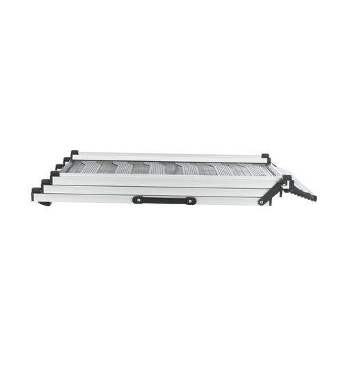 Het telescoop systeem zorgt ervoor dat je hem erg snel uit kunt schuiven en kunt gebruiken en dat de loopplank erg weinig ruimte inneemt. De maximale belasting van deze loopplank is maar liefst 90 kg.
