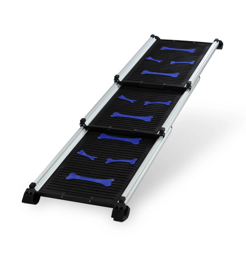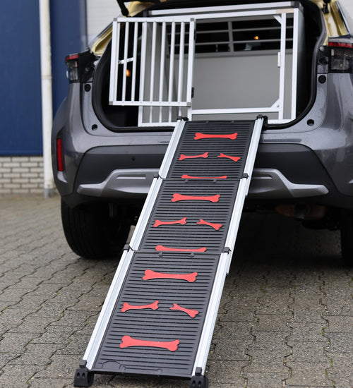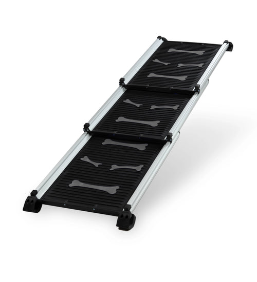 Een telescopische loopplank voor honden is een handig hulpmiddel voor honden die moeite hebben met het in- en uitstappen van bijvoorbeeld een auto, boot of bed. Deze loopplanken zijn ontworpen om in lengte verstelbaar te zijn, zodat ze gemakkelijk kunnen worden aangepast aan de hoogte van het oppervlak waar de hond op moet stappen.