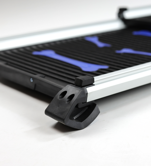 Deze telescopische loopplank is gemaakt van lichtgewicht en duurzaam materiaal, aluminium en kunststof, zodat hij gemakkelijk te dragen en te hanteren is. Het loopvlak is voorzien van antislip ribbels en de uiteinden zijn voorzien van rubberen voetjes.