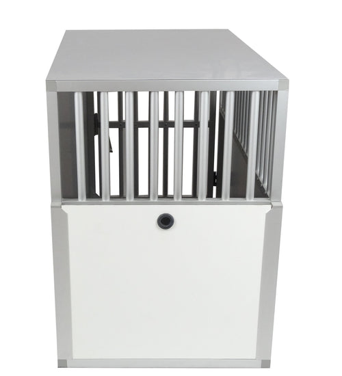 Hundos Maatwerk Aluminium Autobench Rechte 1-vaks met mat en spijlen in de achterwand