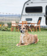 Het groene net is niet-geleidend en daardoor veilig in gebruik. Dankzij de geïntegreerde veer belaste poort heb je altijd eenvoudig toegang tot de omheining. De stevige constructie met glasvezelstokken zorgt voor stabiliteit, terwijl het dicht geweven onderste deel ook bescherming biedt voor kleinere dieren zoals puppy’s of konijnen. Het hek is opvouwbaar, lichtgewicht en daardoor gemakkelijk te vervoeren en op te bergen.