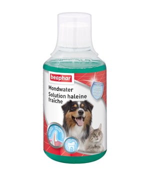 Mondwater gaat de vorming van tandplak tegen bij hond en kat en zorgt voor een frisse adem. Bacteriën en voedselresten vormen tandplak wat resulteert in tand- en tandvleesproblemen en uiteindelijk in een slechte adem. Door de enzymen in het Mondwater worden slechte bacteriën aangepakt om zo de vorming van tandplak te verminderen. Met één flesje Mondwater kunt u 25 liter drinkwater aanmaken wat door het handige doseerdopje extra gebruiksvriendelijk is. Doordat het Mondwater alleen toegevoegd hoeft te worden aan het drinkwater is het uiterst geschikt voor honden en katten die rechtstreekse tandverzorging in de bek (nog) niet toelaten. • gaat tandplak tegen • frisse adem • met 1 flesje 25 liter drinkwater