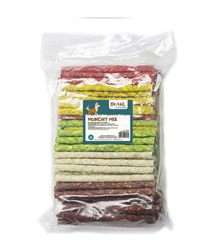 Munchy sticks zijn gemaakt van vermalen onderhuids bindweefsel. Dit bestaat voor het grootste gedeelte uit collageen, wat goed is voor de gebitsverzorging van uw hond. Het breekt tandplak af en is ook zeer geschikt om de kauwspieren te trainen. Munchy Sticks zijn door de fijne vermaling zeer goed verteerbaar.