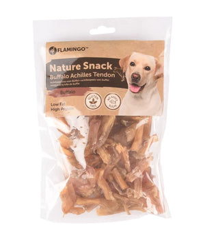 Deze natuurlijke snack bestaat voor 100% uit runderachillespees. Het is een snack met een laag vetgehalte en ideaal voor de hond om op te kauwen, zodat het gebit gezond blijft. De achillespees is vrij klein en bestaat volledig uit kraakbeen, waardoor het wel belangrijk is dat de hond goed kauwgedrag heeft. Echte slokkers zullen de snack in één keer kunnen doorslikken. De snack is wel licht verteerbaar, dus is ook geschikt voor honden met gevoelige darmen. Een lekkere snack voor tussendoor of als beloning.