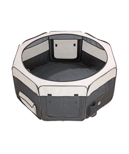 Deze puppyren is gemaakt van duurzaam nylon. Door zijn materiaal is hij erg licht van gewicht. De puppyren heeft een hoogte van 48 cm. De puppyren heeft een lengte en breedte van 116 cm. De ren komt met een afdeknet, zodat uw hond niet in een onbewaakt ogenblik de nylon puppyren verlaat. Verder heeft de ren twee ingangen die d.m.v. een rits open gaan. De buitenkant is voorzien van opbergvakken voor bijvoorbeeld een drinkfles of speelgoed.
