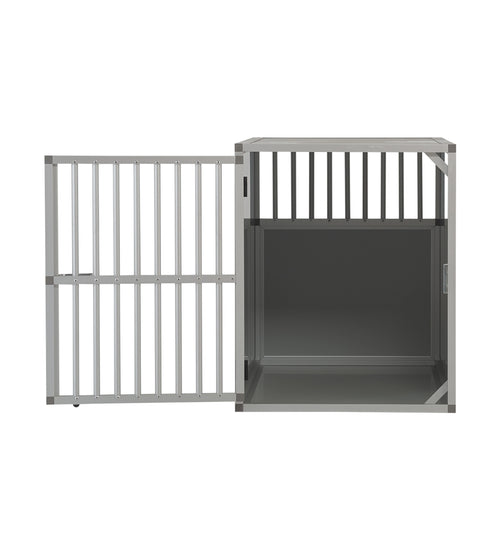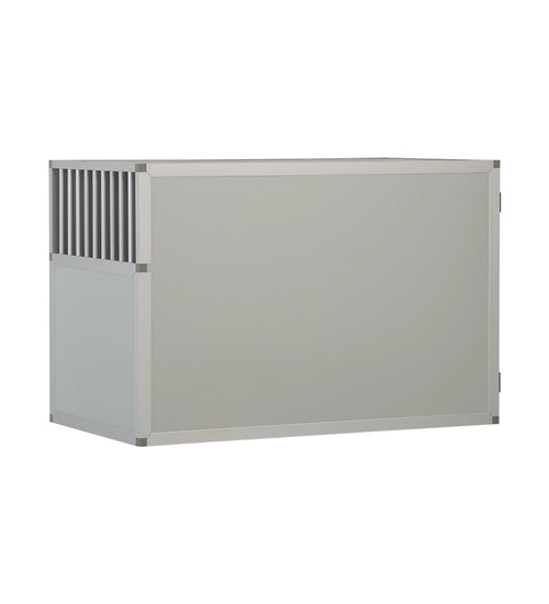 De Autobench Recht model 100x55x67 met spijlen is geproduceerd van geanodiseerd aluminium en het plaatwerk is lichtgrijs alupanel. Het hang en sluitwerk is van degelijk ijzer. De spijlen deur is degelijk geproduceerd en door de spijl diameter van 16mm is het voor honden bijna onmogelijk om de spijlen te buigen. Tevens is de deur voorzien van een extra dwarskoker in het midden ter versteviging. De spijlen in achterwanden fungeren als ventilatie zo krijgt uw hond genoeg frisse lucht tijdens een lange autorit.