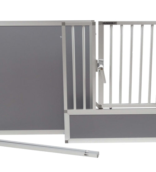De Hundos Pro puppyrennen zijn van top kwaliteit. De panelen worden gemaakt van geanodiseerd aluminium in combinatie met grijs kunststof plaatwerk. De spijlendeur en spijlpanelen zijn degelijk gemaakt en door de spijl van 16mm is het een stevige constructie. De deur is tevens voorzien van een degelijke grendel met knop die door de hond niet opengemaakt kan worden. De puppyren uitbreidingsset 2 panelen is tevens voorzien van 1 staander, waarmee de uitbreiding aan de set gekoppeld kan worden.