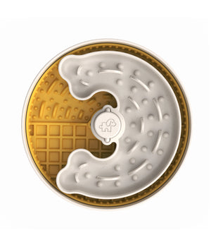 De Lick Bowl bestaat uit 3 componenten, de bowl, de lik mat met verschillende patronen, en de draaiende beenplaat. De Lick Bowl is voor gebruik met rauw voer, zacht voer en snacks en dergelijke. Voor hard- en droog voer adviseren wij de Slow Bowl.
