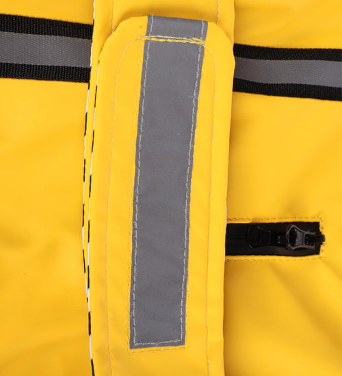 Bescherm uw viervoeter tegen regen en modder met de Ciro Gele regenjas. Deze regenjas is waterdicht, wasbaar en voorzien van reflecterende stroken voor extra veiligheid. Daarnaast heeft de regenjas een opstaande kraag en aanpasbare openingen voor de leiband en het harnas. Het is comfortabel en verstelbaar voor een perfecte pasvorm.