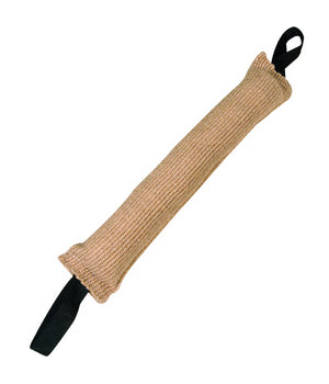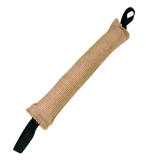 De zak is gemaakt van duurzaam jute en gevuld met katoen, waardoor hij sterk en tegelijk comfortabel in de bek van je hond ligt. De afwerking met bies zorgt voor extra stevigheid, zodat de zak bestand is tegen intensief gebruik. Met de twee handvatten heb je altijd goede grip en kun je samen met je hond actief spelen en trainen.