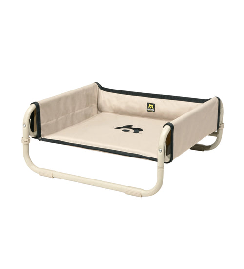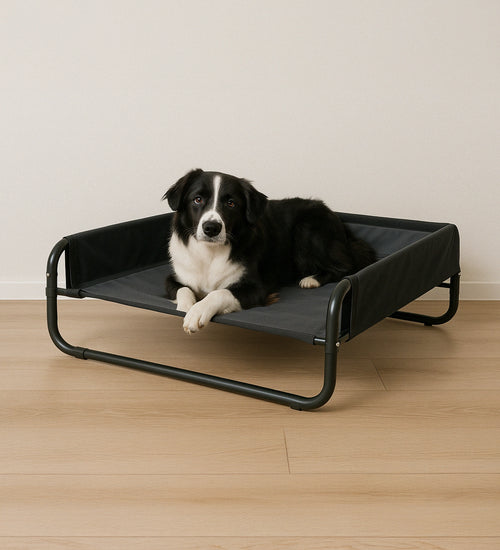 De hond ligt op dit verhoogde hondenbed van de grond af. Hierdoor heeft de hond minder last van de tocht en kou. In de zomer zorgt deze hondenbank juist voor een extra luchtige ligplaats. Tevens biedt deze hondenstretcher optimale ondersteuning voor de rug. De bodem waar de hond op ligt is gemaakt van stevig hout en heeft een schuimlaag aan de bovenzijde. Deze stretcher wordt door diverse dierenartsen aanbevolen voor honden met een heup dysplasie, artritis en gewrichtsproblemen.