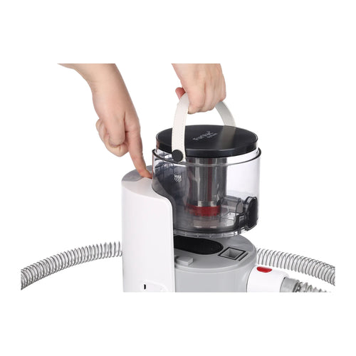 Met een geluidsniveau van slechts 75 dB is deze honden trimmer extra stil, waardoor ook gevoelige honden zonder stress verzorgd kunnen worden. De elektrostatische borstel verwijdert eenvoudig hondenharen van kleding, vloerkleden en meubels, alsof het een magneet is. Het ruime opvangreservoir van 1,5 liter is afneembaar en makkelijk te legen, zodat stof, vuil en haren netjes worden opgevangen.