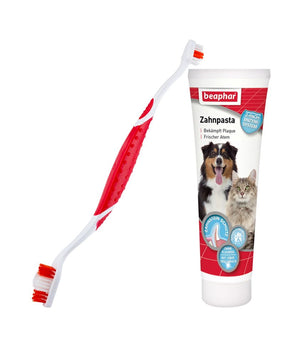 De Beaphar Tandenborstel biedt in combinatie met Beaphar Tandpasta (leversmaak) totale bescherming voor het gebit van uw hond of kat. Dagelijks poetsen gaat tandplak en de vorming van tandsteen tegen en zorgt daarnaast voor een frisse adem. De dubbele tandenborstel is geschikt voor alle honden en katten. Het rubberen handvat zorgt voor extra grip. De borstelharen zijn zacht en flexibel om het tandvlees te beschermen, ze zijn verschillend van lengte om alle plaatsen in de bek goed te bereiken. • rubberen handvat voor extra grip • borstelharen zijn zacht en flexibel om het tandvlees te beschermen • verschillende lengte borstelharen om alle plaatsen in de bek goed te bereiken