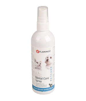 De tandverzorgingsspray voor honden en katten helpt het gebit van je huisdier gezond en sterk te houden. Deze handige spray voorkomt tandplak en gaatjes en zorgt tegelijkertijd voor een frisse adem met een heerlijke muntgeur en -smaak.