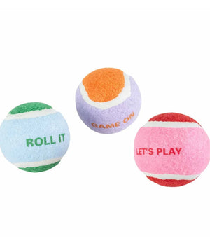 De levendige kleuren maken ze extra goed zichtbaar, en de grappige quotes op elke bal zorgen gegarandeerd voor een glimlach. Of je nu in de tuin, het park of gewoon binnen speelt – deze tennisballen brengen plezier in elke speelsessie. Diameter tennisbal 6,4 cm.