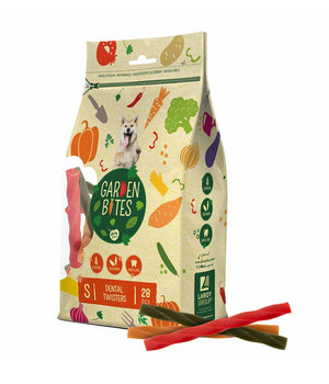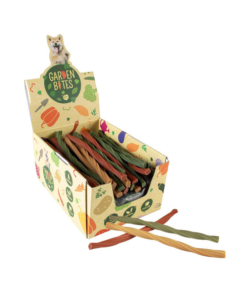 Trakteer je hond op de Duvo+ Garden Bites vegetarische kauwsnack met zoete aardappel, paprika, broccoli. De Garden Bites van duvoplus zijn een lekkere vegetarische kauwsnack die perfect is als beloning of tussendoortje. Met maar liefst 55% zoete aardappel – rijk aan vitamines, calcium en ijzer – en een mix van paprika en broccoli, zijn deze snacks een voedzame aanvulling op het dieet. De snacks zijn glutenvrij en licht verteerbaar, waardoor ze uitstekend geschikt zijn voor honden met allergieën.