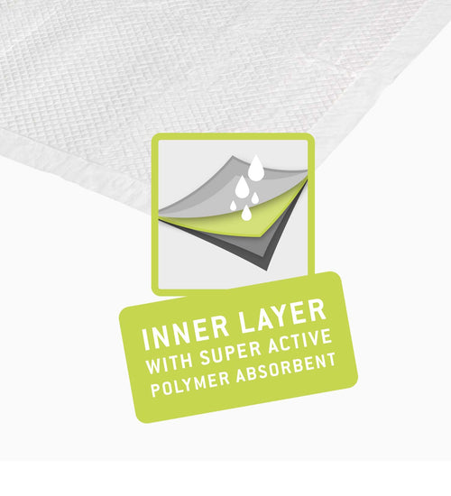 Dankzij de multi-layer constructie en super actieve polymeer absorberende kern kan de pad tot wel 200 keer zijn eigen gewicht aan vocht opnemen! Hierdoor ben je verzekerd van een schone en droge omgeving voor jouw hond.