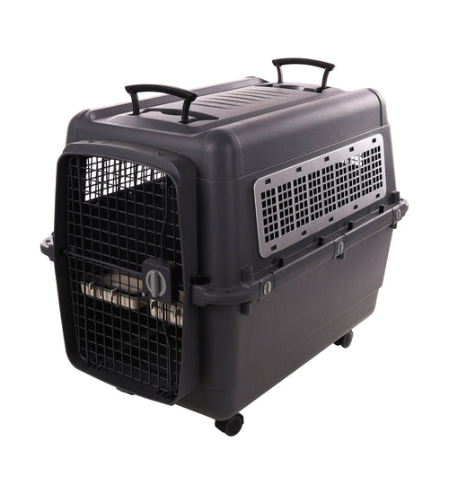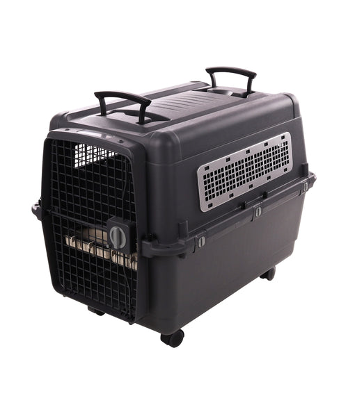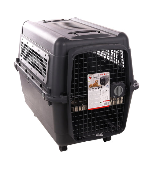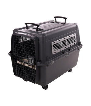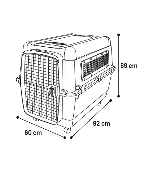 Deze transportkooi is perfect voor jouw hond! Hij is gemaakt van duurzaam kunststof en heeft een stevige metalen deur en ventilatieopening. Dankzij de handvatten en 4 wielen met remmen is hij gemakkelijk te verplaatsen. Veiligheid is gegarandeerd met de clipsluitingen en het draaislot op de deur. Bovendien wordt hij geleverd met een afneembare eet- en drinkpot.