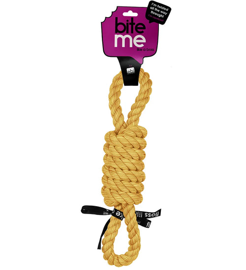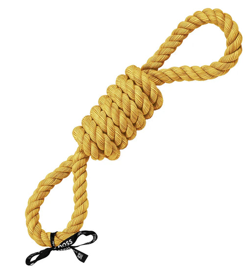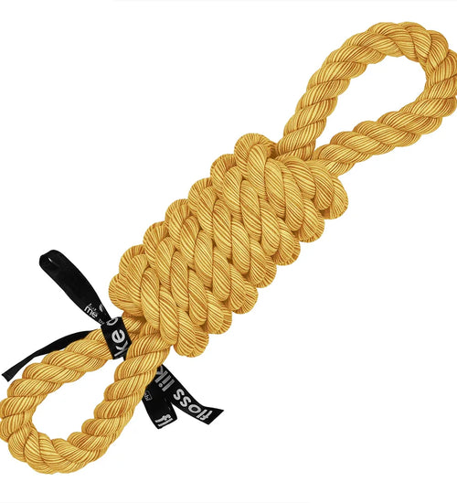 Het speeltouw is gemaakt van 100% gedraaid katoen zonder polyester en is van hoge kwaliteit tot in de kern. De melange gele kleur geeft het touw een speelse uitstraling. Tijdens het spelen helpt het flostouw bovendien het gebit en tandvlees van je hond gezond te houden door een reinigend effect.