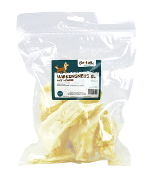 Honingneus is een zoete, geur en vetarme kauwsnack waar honden dol op zijn. De taaiheid zorgt voor veel kauw plezier en kauwen is goed voor het gebit van uw hond. Door kauwen komt er een stof vrij bij honden die tandplak bestrijd. Daarom is regelmatig een kauw snack erg goed voor uw hond.