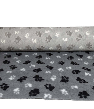 Hundos Vetbed per strekkende meter met antislip 150 cm breed grijs met voetprint