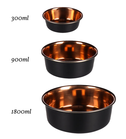 De combinatie van zwart en koper geeft de voerbak een luxe uitstraling die mooi past in elk interieur. Dankzij het stevige inox materiaal is de bak duurzaam, krasbestendig en hygiënisch. De antislip bodem voorkomt schuiven tijdens het eten of drinken, wat ideaal is voor enthousiaste eters.