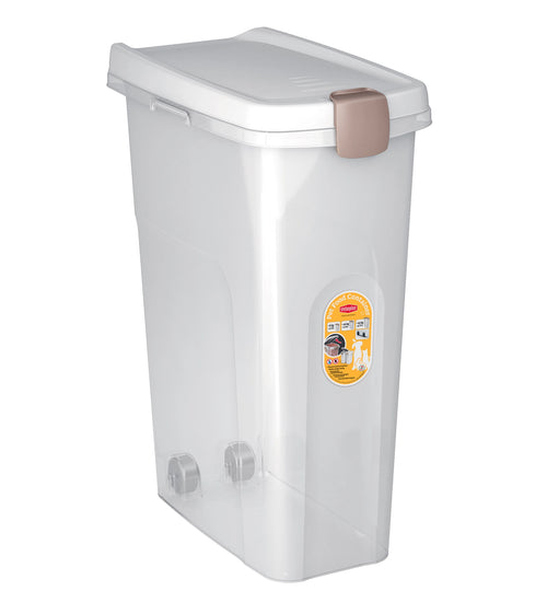 Deze geweldige voerton is voorzien van een luchtdichte sluiting zodat u geen vervelende luchtjes meer ruikt als de voedselcontainer dicht is. Het houdt voer vers en knapperig. De voerton is voorzien van 2 wielen zodat u hem eenvoudig kunt verplaatsen. Ook zit er een koppeling aan zodat u eenvoudig 2 containers naast elkaar kunt plaatsen.
