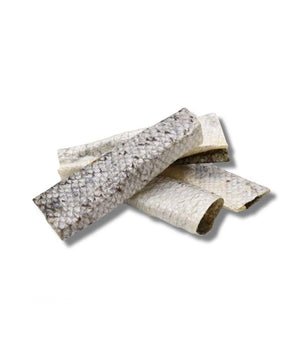 Onze Zalm Huidrollen zijn gemaakt van hoogwaardige zalmhuid, zorgvuldig geselecteerd en bereid om een natuurlijke en voedzame traktatie te bieden voor je geliefde viervoeter. We geloven dat huisdieren alleen het beste verdienen, daarom zijn onze huidrollen vrij van kunstmatige toevoegingen, conserveermiddelen en vulstoffen. Je kunt erop vertrouwen dat je je hond een gezonde en bevredigende snack geeft.